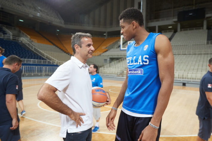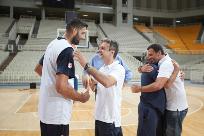 O Μητσοτάκης παίζει μπάσκετ με την Εθνική ομάδα (εικόνες)