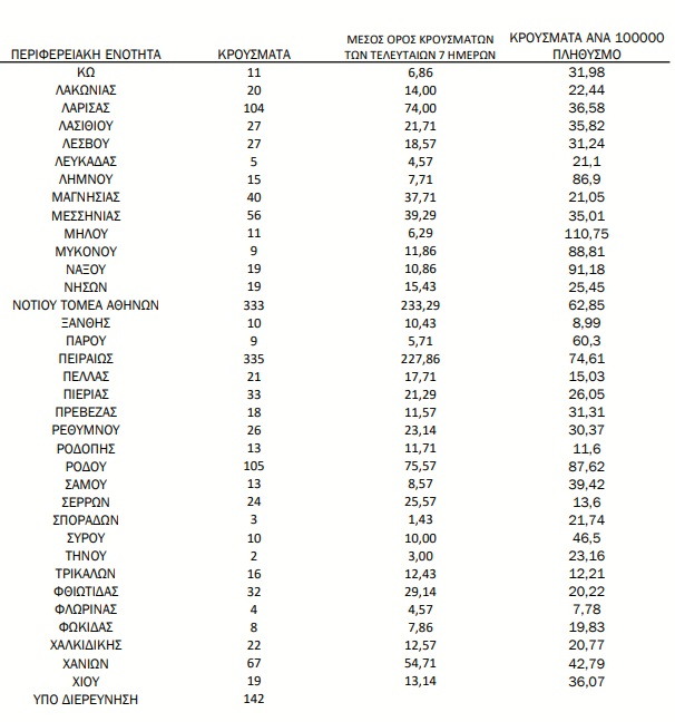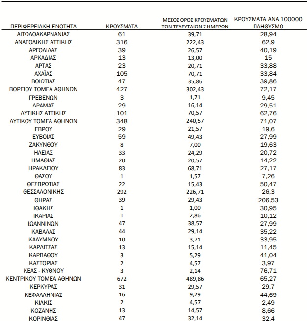 Αναλυτικότερα τα κρούσματα στις περιφερειακές ενότητες που ανήκουν στην Αττική: