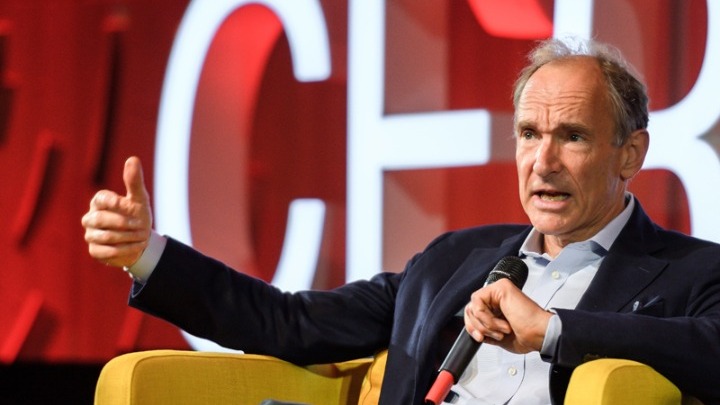 Ο σερ Τιμ δημιούργησε το WWW στο CERN το 1989, συνδέοντας με υπερσυνδέσμους (hyperlinks) διαφορετικές πληροφορίες του πρώιμου Ίντερνετ. Δημιούργησε το πρώτο πρόγραμμα διαδικτυακής πλοήγησης (web browser) και αρνήθηκε να κατοχυρώσει την εφεύρεσή του με πατέντα. Τo 1993 το CERN παραχώρησε για ελεύθερη χρήση όλα τα δικαιώματα στη νέα τεχνολογία.