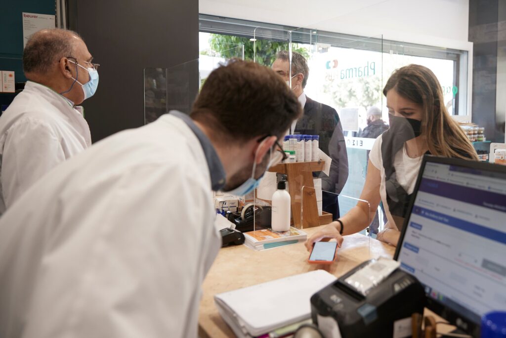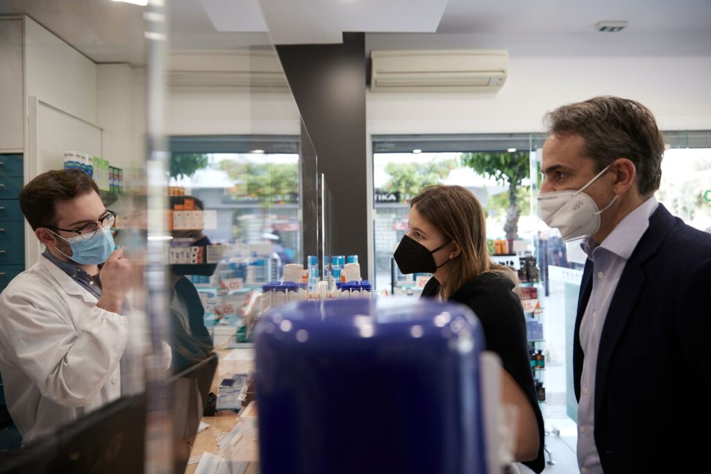 Ο Κυριάκος Μητσοτάκης εξήγησε ότι η Δάφνη βρίσκεται στην Γ’ Λυκείου, έτσι προσήλθαν στο φαρμακείο για την προμήθεια του self-test. «Ήρθαμε να πάρουμε το τεστ μας. Πώς πάνε μέχρι στιγμής οι παραδόσεις;», ρώτησε ο Πρωθυπουργός τον φαρμακοποιό για να απαντήσει πως «οι παραδόσεις επί του παρόντος σε εμάς είναι ομαλές. Η πλατφόρμα δουλεύει μία χαρά, είμαστε πάντα στο πλευρό του καθενός όποτε θέλει για διευκρινίσεις. Του τα εξηγούμε λεπτομερώς, για να έχει μία πρώτη άποψη. Από εκεί και πέρα του δίνουμε και τις οδηγίες και πάντα εδώ είμαστε, τα τηλέφωνά μας τα ξέρουν».
