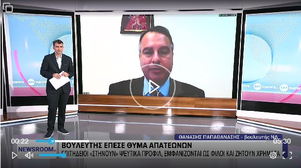 Αναστάτωση προκάλεσε η δημιουργία ψεύτικου προφίλ στο όνομα του βουλευτή της ΝΔ Θ. Παπαθανάση, μέσω του οποίου απατεώνες επιχείρησαν να εξαπατήσουν πολίτες, ζητώντας ακόμη και χρηματικά ποσά.