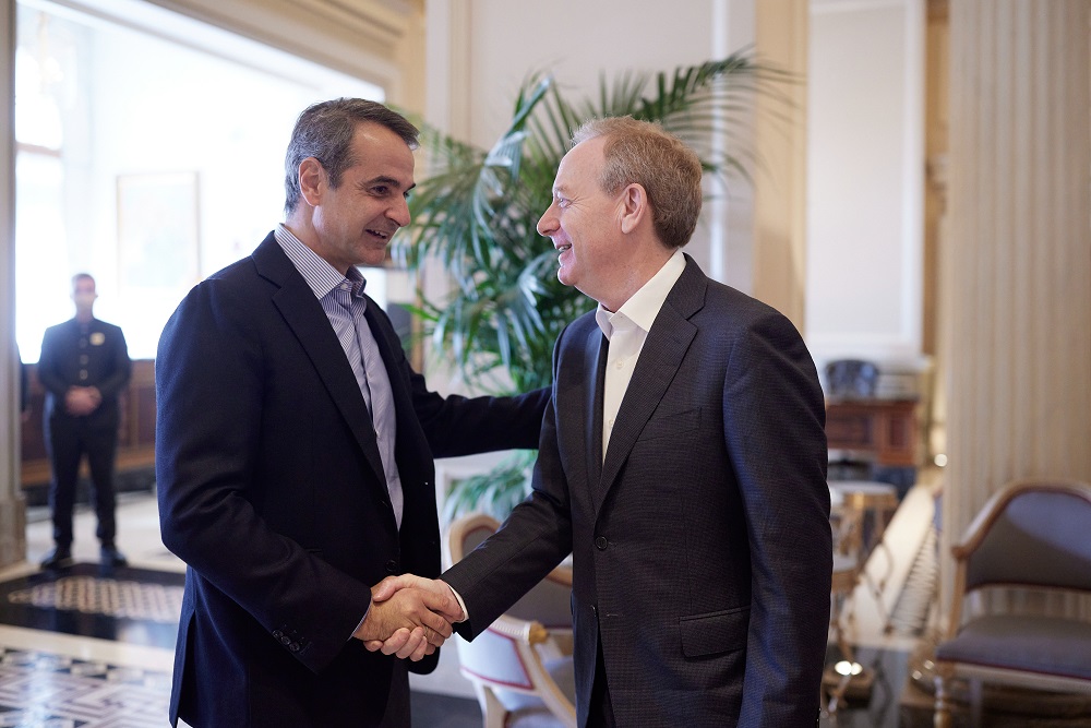 Με τον πρόεδρο της Microsoft, Μπραντ Σμιθ (Brad Smith), συναντήθηκε σήμερα ο πρωθυπουργός, Κυριάκος Μητσοτάκης, στο περιθώριο των εργασιών του forum «The Trilateral Commission».