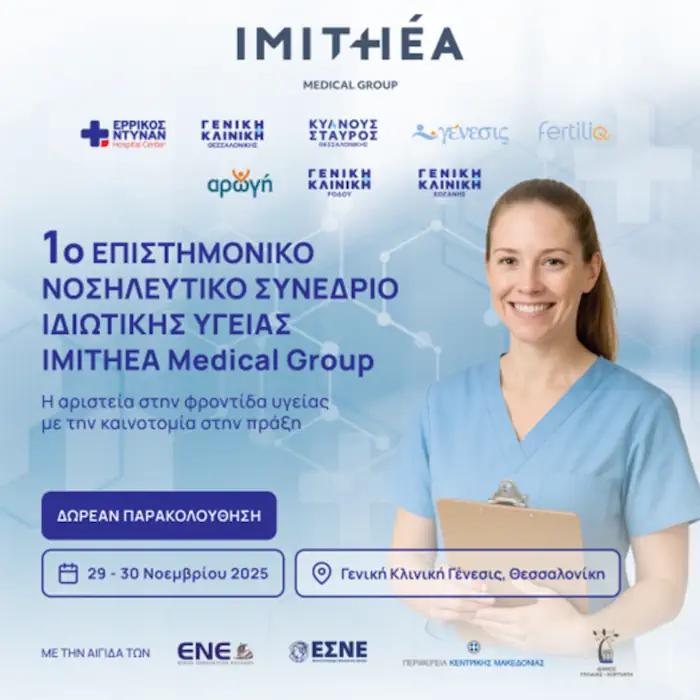 Με στόχο να αναδειχθεί ο κρίσιμος ρόλος των νοσηλευτών/νοσηλευτριών σε ένα σύγχρονο σύστημα υγείας, ο Όμιλος ΗΜΙΤΗΕΑ, στην πρώτη κοινή δράση των νοσοκομείων και των κλινικών του, διοργανώνει το 1ο Επιστημονικό Νοσηλευτικό Συνέδριο Ιδιωτικής Υγείας, με θέμα «Η Αριστεία στη Φροντίδα Υγείας με την Καινοτομία στην Καθημερινή Πράξη», το οποίο θα πραγματοποιηθεί στις 29 και 30 Νοεμβρίου 2025 στη Θεσσαλονίκη (Αίθουσα εκδηλώσεων, Γενική Κλινική Γένεσις στην Πυλαία).