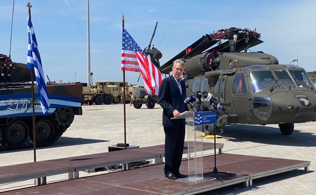 Ο Αμερικανός πρέσβης τόνισε τη σημασία της άσκησης που διεξήχθη στο πεδίο βολής αρμάτων Πετροχωρίου Ξάνθης, επισημαίνοντας ότι υπογραμμίζει την κρίσιμη σημασία της νοτιοανατολικής πτέρυγας του ΝΑΤΟ.