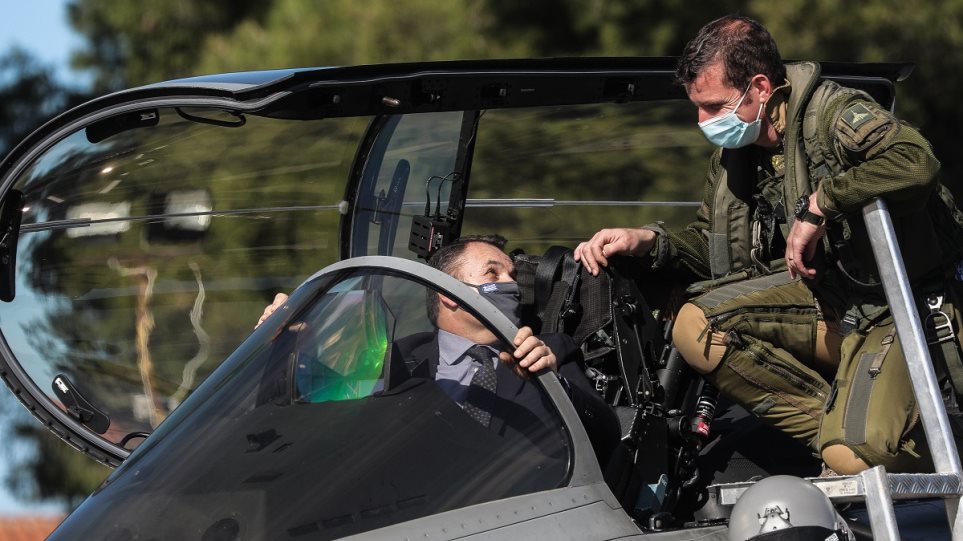 Ο Ν. Παναγιωτόπουλος και ο αρχηγός ΓΕΕΘΑ ανέβηκαν σε σταθμευμένο γαλλικό Rafale ενώ συνομίλησαν και με τους Γάλλους πιλότους των μαχητικών αεροσκαφών.
