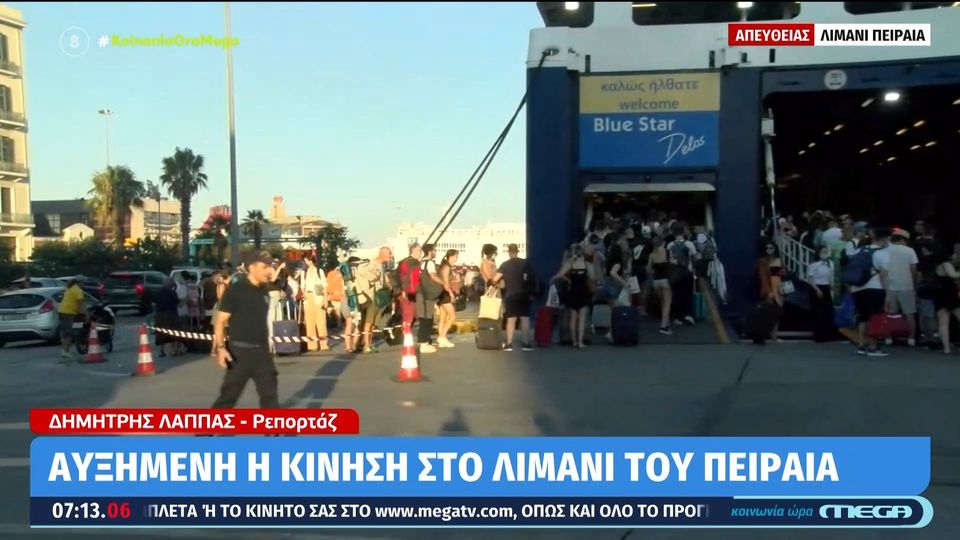 Πειραιάς: Η στιγμή της μεγάλης απόδρασης από την Αθήνα έχει ξεκινήσει. Οι αδειούχοι επιβιβάζονται στα πλοία από το λιμάνι του Πειραιά και της Ραφήνας για τα νησιά, περιμένοντας υπομονετικά στις ουρές που σχηματίζονται.