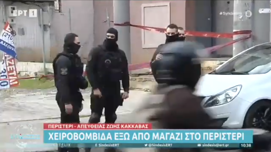 Συναγερμός σήμανε νωρίτερα το πρωί στο Περιστέρι καθώς βρέθηκε χειροβομβίδα έξω από κατάστημα της οδού Τζον Κέννεντυ.