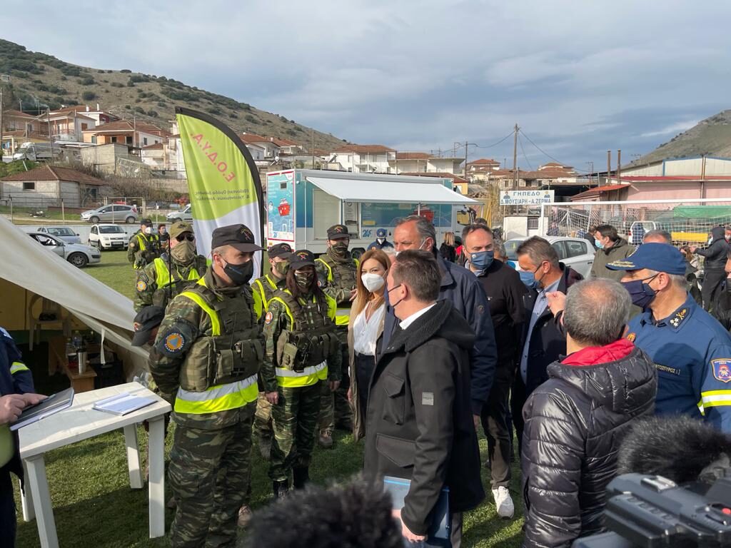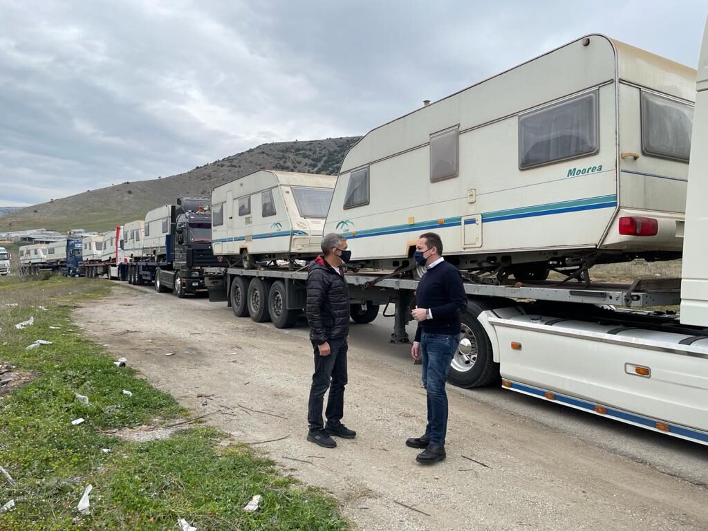 Πρώτον, όσον αφορά τις υποδομές, ανακοίνωσε άμεση τακτοποίηση του θέματος της στέγασης σε τροχόσπιτα και οικίσκους, πέραν των ξενοδοχείων που έχουν ήδη διατεθεί. Ήδη τα πρώτα 37 τροχόσπιτα έχουν φτάσει στην περιοχή. Έχει γίνει η χωροθέτηση και ξεκίνησαν οι εργασίες υποδομής, ώστε εντός της επόμενης εβδομάδας να μεταφερθούν οικίσκοι στα χωριά Δαμάσι, Μεσοχώρι και Ζάρκο.