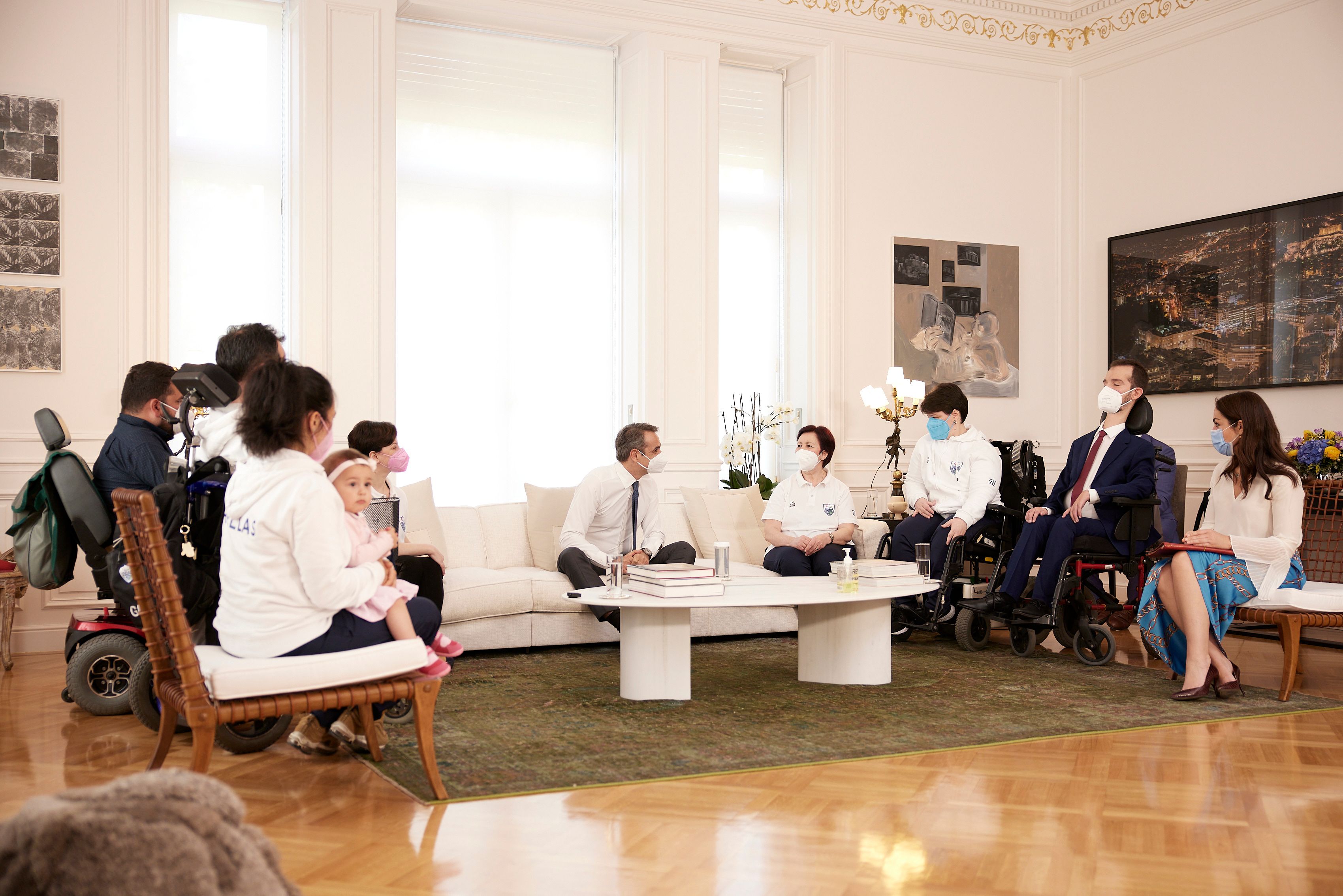 Καλώς ήρθατε. Χαίρομαι πάρα πολύ που σας υποδέχομαι σήμερα στο Μέγαρο Μαξίμου και είναι πραγματικά μία σημαντική στιγμή για σας, μια σημαντική στιγμή και για μας, καθώς μπορούμε πια με τον πιο επίσημο τρόπο να πούμε ότι ένα αίτημα του αναπηρικού κινήματος, ειδικά των ανθρώπων που πάσχουν από βαριά αναπηρία, γίνεται επιτέλους πράξη.