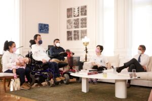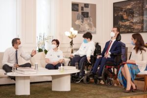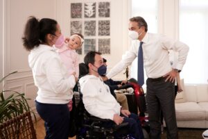 «Ένα αίτημα του αναπηρικού κινήματος, ειδικά των ανθρώπων που πάσχουν από βαριά αναπηρία, γίνεται επιτέλους πράξη», σημείωσε ο Πρωθυπουργός Κυριάκος Μητσοτάκης για το πιλοτικό πρόγραμμα «Προσωπικός Βοηθός για Άτομα με Αναπηρία», στη συνάντηση που είχε το μεσημέρι στο Μέγαρο Μαξίμου με τον Ευρωβουλευτή Στέλιο Κυμπουρόπουλο, τους χρυσούς Παραολυμπιονίκες στο μπότσια Γρηγόρη Πολυχρονίδη και Άννα Ντέντα και τον υπεύθυνο του Πολιτιστικού Κέντρου του Δήμου Περιστερίου και Δημοτικό Σύμβουλο Μπάμπη Δούναβη.