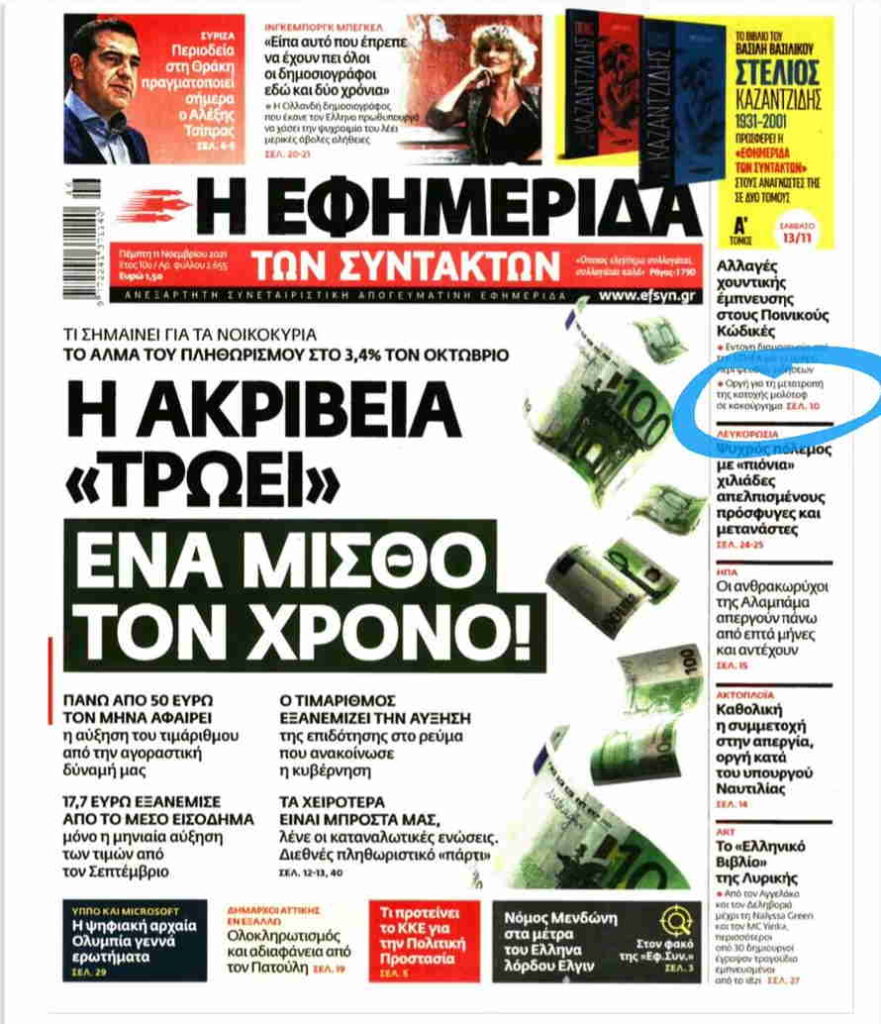 Βέβαια, κάποιοι διαμαρτύρονται, τώρα μέχρι να καεί η δική τους περιουσία ή να τραυματιστούν οι ίδιοι, ενώ κάποιοι άλλοι, όπως η “Συντακτών” για παράδειγμα, “ανακαλύπτει”… “οργή για τη μετατροπή της κατοχής μολότοφ σε κακούργημα”.