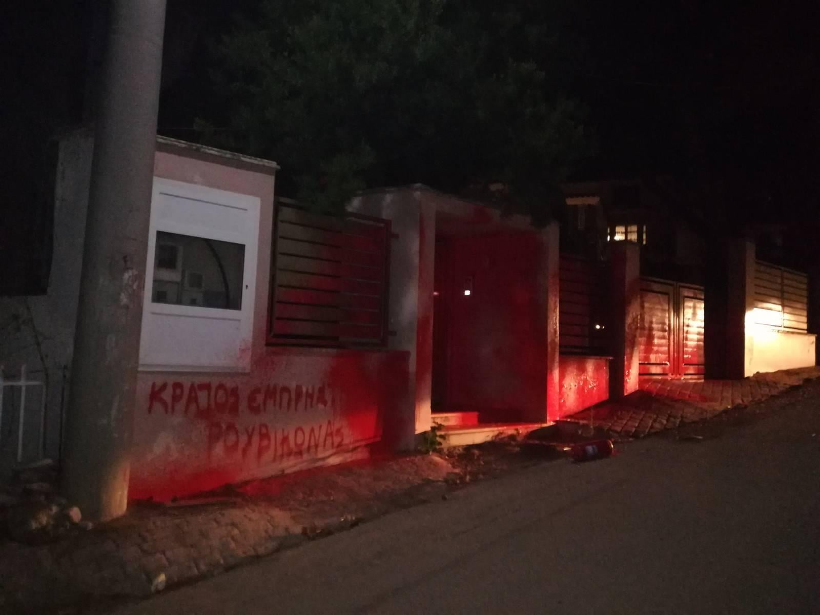 Τα μέλη της αναρχικής ομάδας έγραψαν συνθήματα με κόκκινη μπογιά στους εξωτερικούς τοίχους του σπιτιού και στη συνέχεια αποχώρησαν.