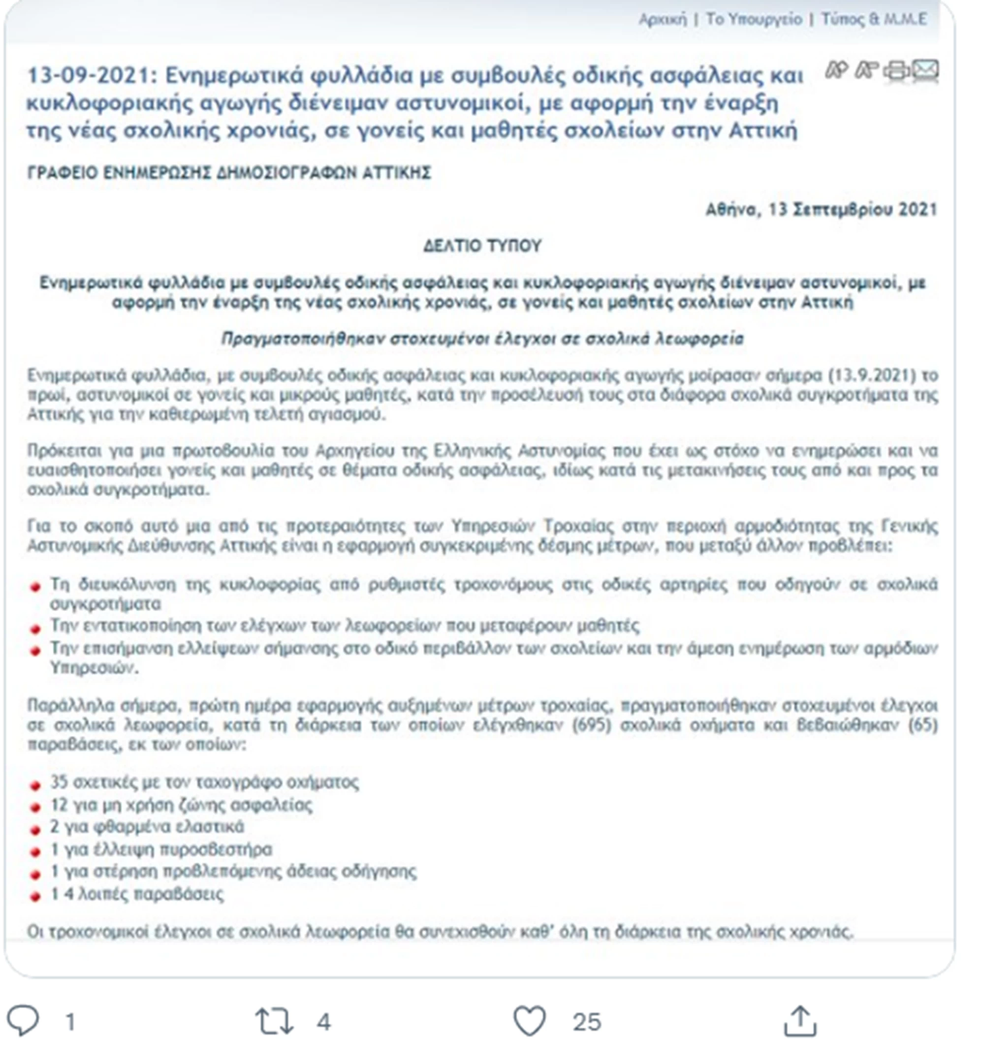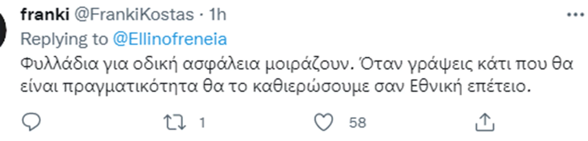 Άλλος χρήστης ως απάντηση στην “Ελληνοφρένεια” ανάρτησε και τη σχετική ενημέρωση από την αστυνομία.