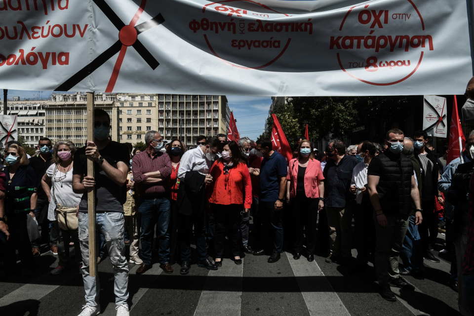 Σε εξέλιξη βρίσκεται, αυτή την ώρα, στο κέντρο της Αθήνας απεργιακή συγκέντρωση για την εργατική Πρωτομαγιά. Με κεντρικό σύνθημα «Όχι στον εργασιακό Μεσαίωνα, κάτω τα χέρια από το 8ωρο», η ΑΔΕΔΥ, το ΕΚΑ, εργατικά σωματεία και συνδικάτα έχουν συγκεντρωθεί στην Πλατεία Κλαυθμώνος και πρόκειται να κατευθυνθούν μέχρι το Σύνταγμα. Ακόμη, μεταξύ των οργανώσεων και των κομμάτων που βρίσκονται στο συλλαλητήριο είναι ο ΣΥΡΙΖΑ και το ΜέΡΑ 25.