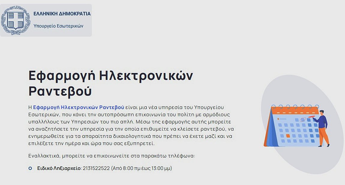 Όπως αναφέρει το υπουργείο Εσωτερικών, η λειτουργία των ηλεκτρονικών ραντεβού θα επεκταθεί σταδιακά και σε άλλες υπηρεσίες του Δημοσίου.