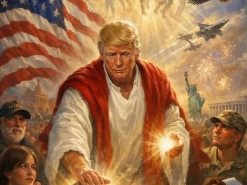 Ο ρεπουμπλικάνος σχεδόν ταυτόχρονα ανέβασε εικόνα δημιουργημένη από κάποιο εργαλείο τεχνητής νοημοσύνης στην οποία παρουσιάζεται, με λευκή και κόκκινη τήβεννο, να βάζει το χέρι στο μέτωπο αρρώστου, κλινήρη στο νοσοκομείο, πιθανότατα να τον θεραπεύει, πλαισιωμένος από ανθρώπους που προσεύχονται ή κάτι προσμένουν, και στο φόντο αμερικανική σημαία, το Άγαλμα της Ελευθερίας, καταδιωκτικά, αετούς και άλλες μορφές.
