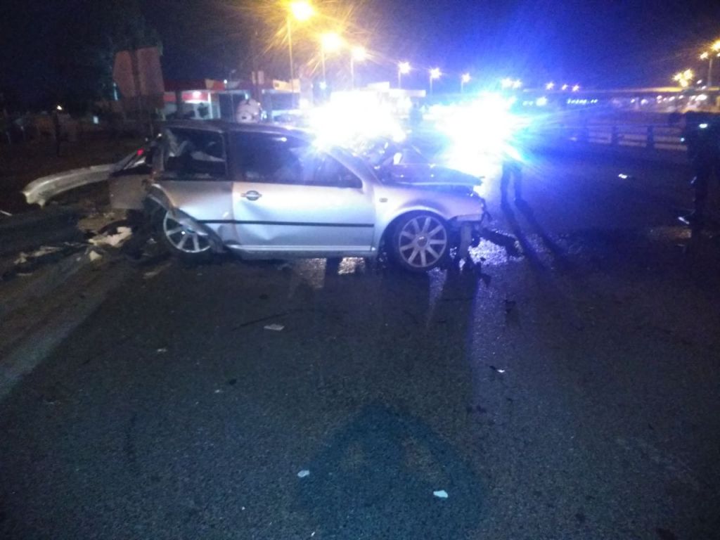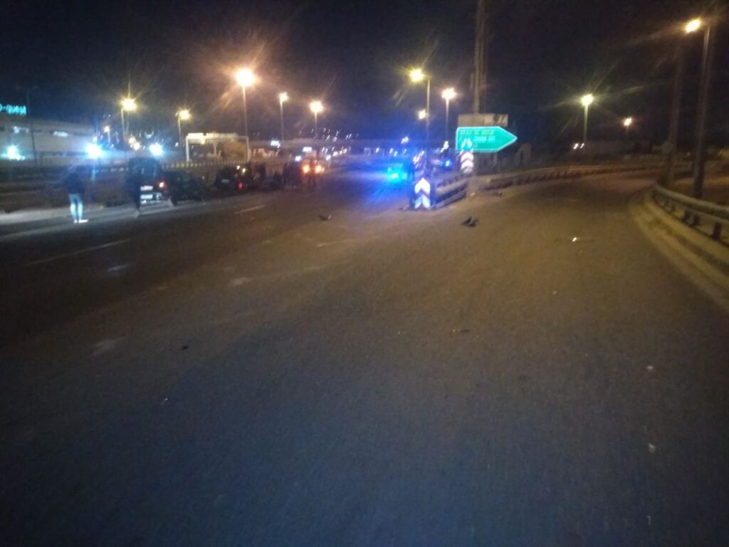 Όχημα παρεκτράπηκε από την πορεία του και προσέκρουσε στο προστατευτικό κιγκλίδωμα. Λόγω της σφοδρής πρόσκρουσης εξαρτήματα του αυτοκινήτου διασκορπίστηκαν σε όλες τις λωρίδες της Εθνικής Οδού, με τα διερχόμενα αυτοκίνητα μεταξύ των οποίων και μοτοσυκλέτες της ομάδας Δίας να προσπαθούν να αποφύγουν τα αντικείμενα.