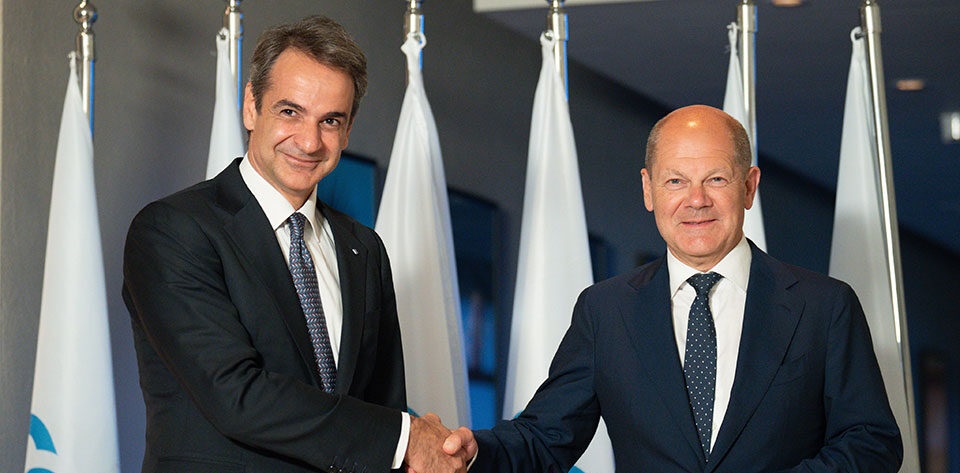 Πρόκειται για τη δεύτερη συνάντηση Μητσοτάκη-Σολτς μέσα σε 15 ημέρες.