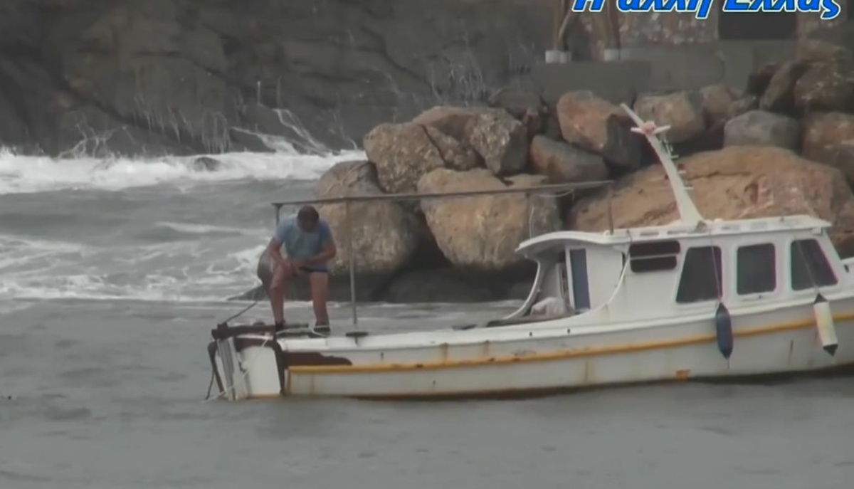Στιγμές τρόμου έζησε στην Αστυπάλαια ο 37χρονος ψαράς, Γιώργος Κονταράτος, όταν αναγκάστηκε να βουτήξει σε θάλασσα με ανέμους 10 μποφόρ για να αποτρέψει τη βύθιση του καϊκιού του, το οποίο ανήκει στην οικογένειά του 3 γενιές.