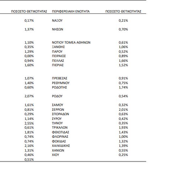 Όπως καταδεικνύουν τα στοιχεία “στο κόκκινο” βρίσκεται ο Πειραιάς με ποσοστό θετικότητας 0,89% ενώ ακολουθεί η Δυτική Αττική με 0,81%.