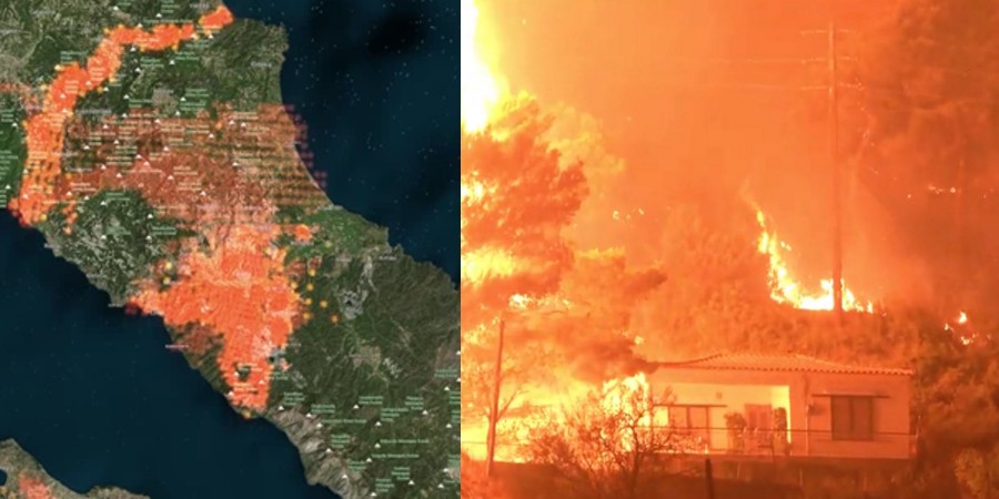 Ανεξέλεγκτη και με αμείωτη ένταση μαίνεται η φωτιά στην Εύβοια, με τις δυνάμεις της Πυροσβεστικής να καταβάλουν υπεράνθρωπη προσπάθεια για να οριοθετήσουν την τα μέτωπα της καταστροφικής πυρκαγιάς. Ενδεικτική της κατάστασης που επικρατεί αυτή τη στιγμή στο νησί, είναι η εικόνα της πύρινης λαίλαπας όπως καταγράφεται από δορυφόρο.
