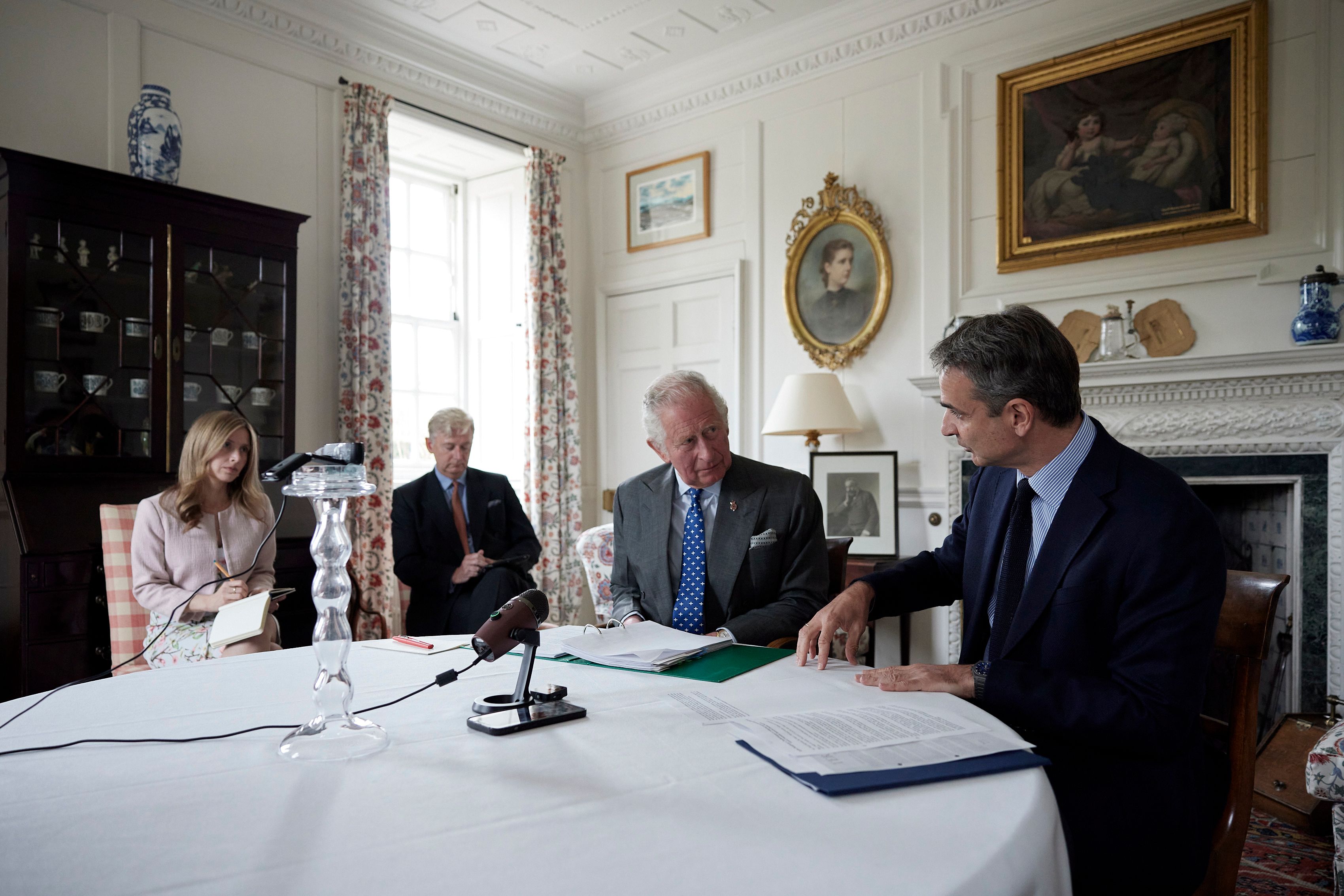 Πρίγκιπας της Ουαλίας: Καλησπέρα σε όλους. Με μεγάλη χαρά σας βλέπω όλους ξανά, έστω και όχι δια ζώσης. Είμαι ευγνώμων προς όλους σας που μπορέσατε να συμμετάσχετε. Και χαίρομαι ακόμη περισσότερο που ο Πρωθυπουργός είναι εδώ δίπλα μου, έχοντας, πολύ ευγενικά, καταφέρει να κάνει αυτό το ταξίδι. Και τώρα είναι εδώ στο Dumfries House. Και πρέπει να πω ότι ήταν ιδιαίτερα ενθαρρυντικό να ακούσω για όλη αυτή τη συζήτηση που έχετε, για το πώς μπορούμε να κάνουμε το Ελληνικό Συμβούλιο SMI έναν πραγματικά αποτελεσματικό καταλύτη, τόσο στην Ελλάδα όσο και διεθνώς. Και ξέρω πόσο κρίσιμες είναι οι ελληνικές επιχειρήσεις για την παγκόσμια βιομηχανία.