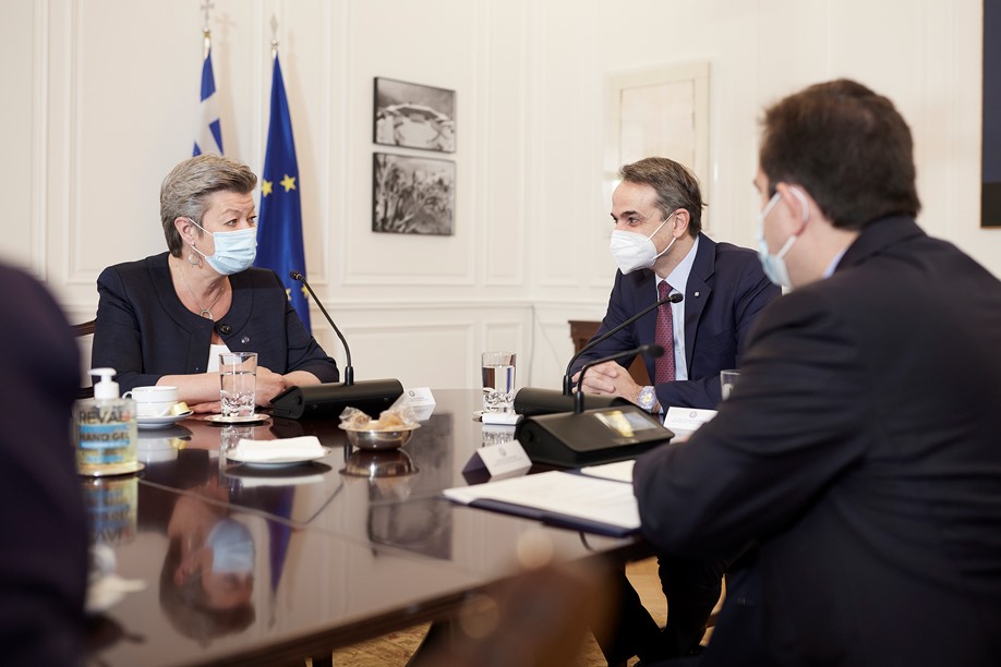 Ο Πρωθυπουργός και η Επίτροπος, αρμόδια για Εσωτερικές Υποθέσεις, Ylva Johansson, κατά την έναρξη της συνάντησής τους είχαν τον παρακάτω διάλογο: