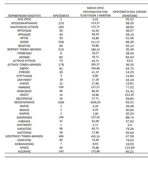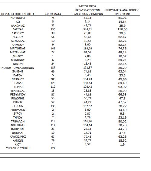 Τέλος, 122 κρούσματα είναι υπό διερεύνηση.