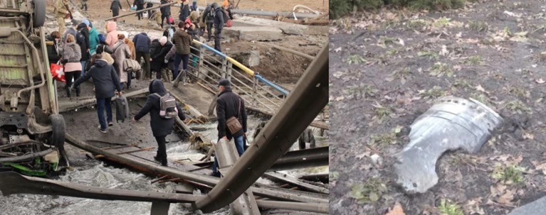 Στη γειτονιά Borshchahivka του Κιέβου, περίπου 18 χλμ δυτικά του κέντρου, τα χαλύβδινα υπολείμματα ενός πυραύλου, τον οποίο η ουκρανική αεράμυνα προφανώς κατέρριψε, βρίσκονταν στο κέντρο μιας λεωφόρου μερικά μέτρα από έναν σταθμό λεωφορείων.