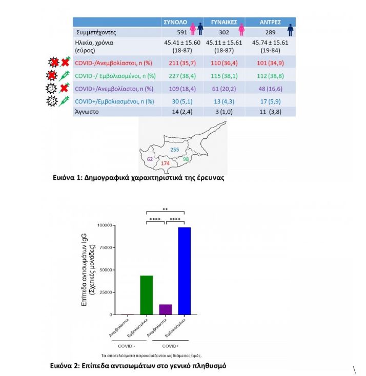 Σημαντική είναι η διαφορά στα επίπεδα αντισωμάτων που επιτυγχάνονται μεταξύ φυσικής νόσησης και εμβολιασμού, σύμφωνα με τα αποτελέσματα του πρώτου σκέλους μεγάλης έρευνας που πραγματοποιείται από το Τμήμα Επιστημών Ζωής και Υγείας του Πανεπιστημίου Λευκωσίας και του Ομίλου Βιοϊατρική με την στήριξη της εταιρείας SIEMENS (παροχή αναλωσίμων).