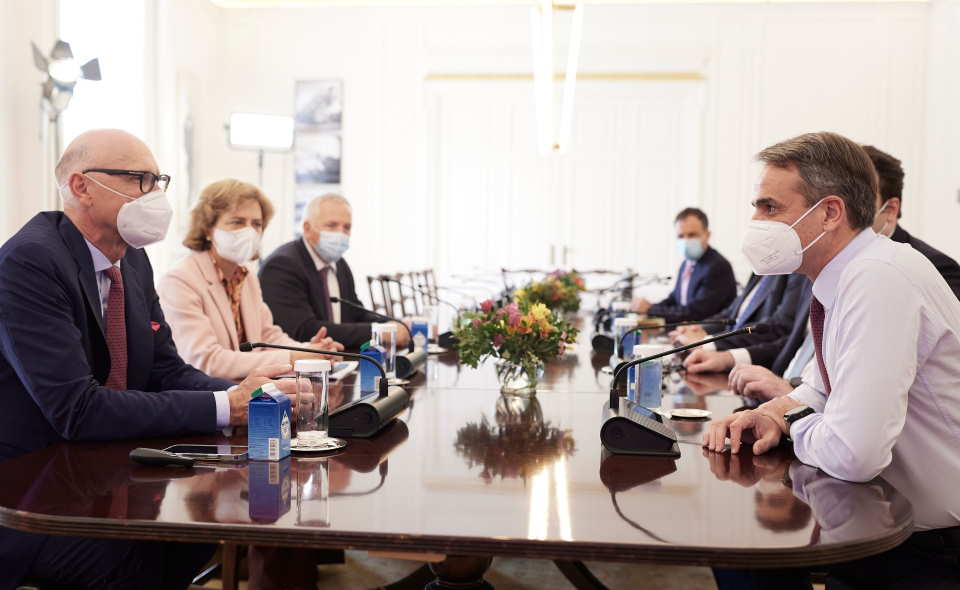 Σε συνέχεια των ανακοινώσεων του Δεκεμβρίου για την πραγματοποίηση επενδύσεων άνω των 3 δισ. ευρώ από τον ΟΤΕ σε βάθος πενταετίας (2022-2027), ο Πρωθυπουργός Κυριάκος Μητσοτάκης συναντήθηκε το μεσημέρι στο Μέγαρο Μαξίμου με τον Διευθύνοντα Σύμβουλο της Deutsche Telekom, Tim Höttges.