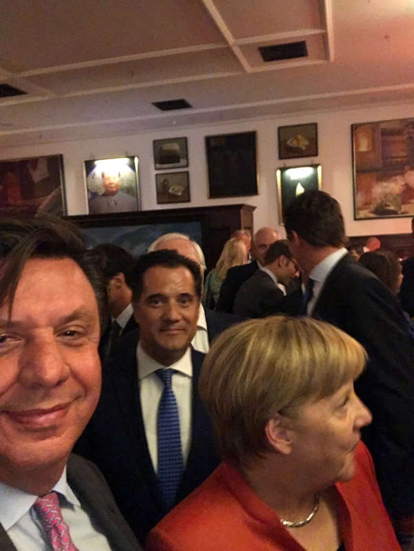 Ο Άδωνις Γεωργιάδης συνομίλησε για λίγα λεπτά και με την Καγκελάριο της Γερμανίας Άνγκελα Μέρκελ καθώς και με άλλα στελέχη του CDU.