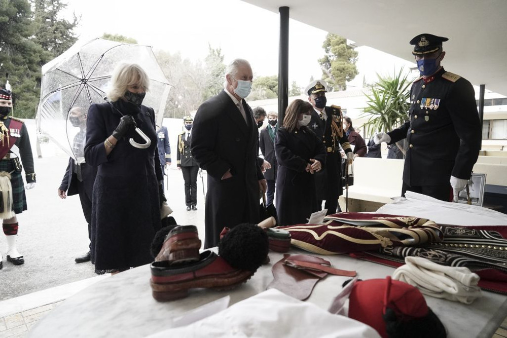 Μετά τη διμερή συνάντηση, η Πρόεδρος της Δημοκρατίας και ο σύντροφός της Παύλος Κοτσώνης συνόδευσαν τον πρίγκιπα της Ουαλίας, Κάρολο, και τη δούκισσα της Κουρνουάλης στην Προεδρική Φρουρά, όπου επιθεώρησαν το τιμητικό άγημα. Στη συνέχεια, αξιωματικοί της Προεδρικής Φρουράς περιέγραψαν στο πριγκηπικό ζεύγος την διαδικασία κατασκευής των ευζωνικών στολών.