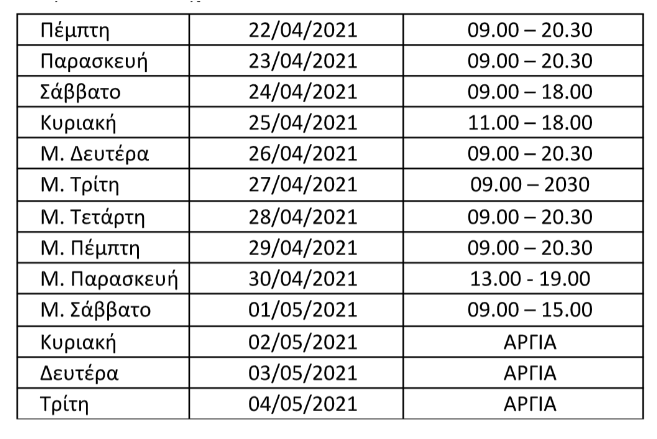 Το ωράριο λειτουργίας των εμπορικών καταστημάτων της Αττικής που θα ισχύσει για την εορταστική περίοδο του Πάσχα, ανακοινώνει ο Εμπορικός Σύλλογος Αθηνών.