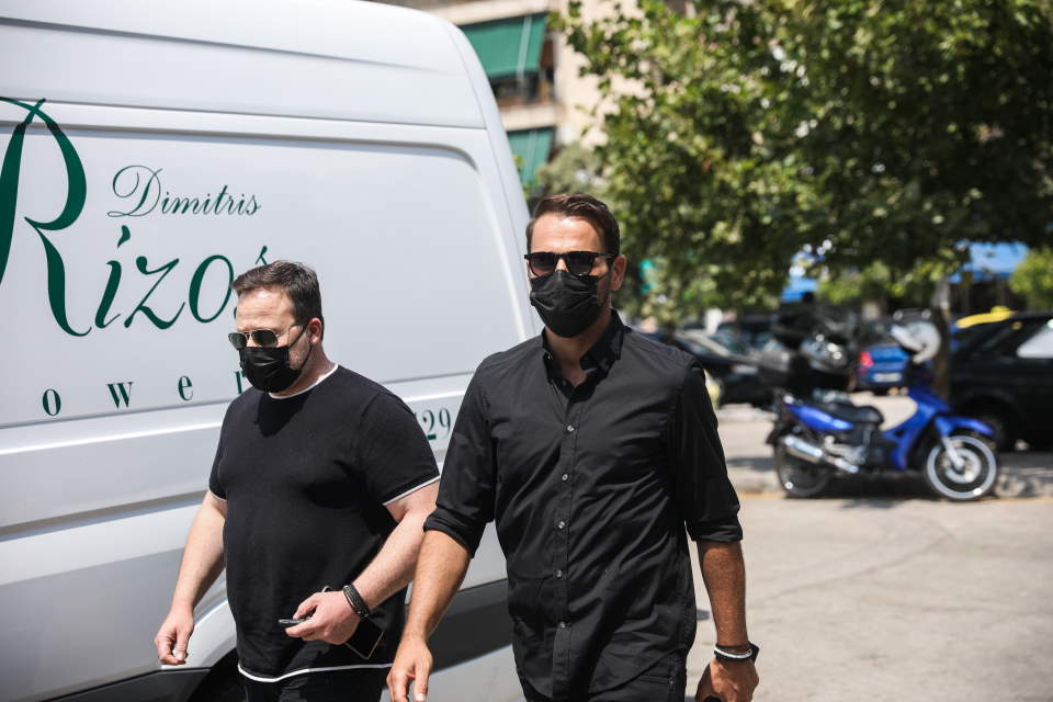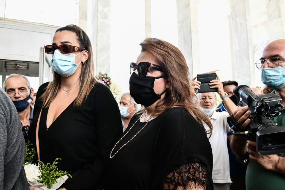 Λίγο πριν τις 2 το μεσημέρι, έφθασε στο Α’ Νεκροταφείο Αθηνών η οικογένεια του αγαπημένου τραγουδιστή, η σύζυγός του, Άντζελα Γκερέκου και η κόρη του Μαρία.