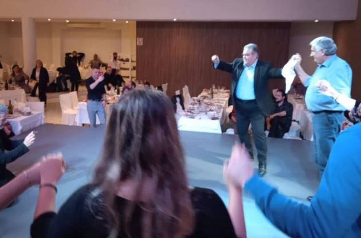 Δημήτρης Κουτσούμπας Τσάμικο: Τις χορευτικές του ικανότητες έδειξε το Σάββατο το βράδυ χορεύοντας ένα τσάμικο ο Γενικός Γραμματέας της Κεντρικής Επιτροπής του ΚΚΕ κ. Δημήτρης Κουτσούμπας. Ο κ. Κουτσούμπας που βρέθηκε στα Χανιά με αφορμή τα εγκαίνια των νέων γραφείων του κόμματος μίλησε σε συνεστίαση που έγινε σε κέντρο των Χανίων, και δεν παρέλειψε και να χορέψει και τον χορό της ιδιαίτερης πατρίδας του. Στις φωτογραφίες του Kriti360.gr o Γενικός Γραμματέας της Κ.Ε του ΚΚΕ με το μέλος του Πολιτικού Γραφείου του κόμματος κ. Τηλέμαχο Δημουλά.