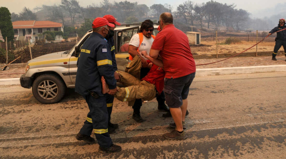 Τραυματίστηκε πυροσβέστης. H φωτιά σε κάποια τμήματα της περιοχής έφτασε στη θάλασσα. Απεγκλωβισμός ανθρώπων σε παραλία από το Λιμενικό. Πλάνα που σοκάρουν από το πύρινο μέτωπο.