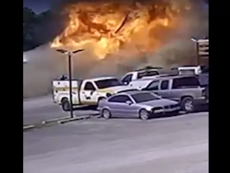 Στο σοκαριστικό βίντεο, πιθανότατα από κάμερα ασφαλείας, το αεροπλάνο πέφτει με δύναμη στο πάρκινγκ, και μετατρέπεται σε κλάσματα του δευτερολέπτου σε άμορφη μάζα από μέταλλα μέσα σε μια μπάλα φωτιάς.