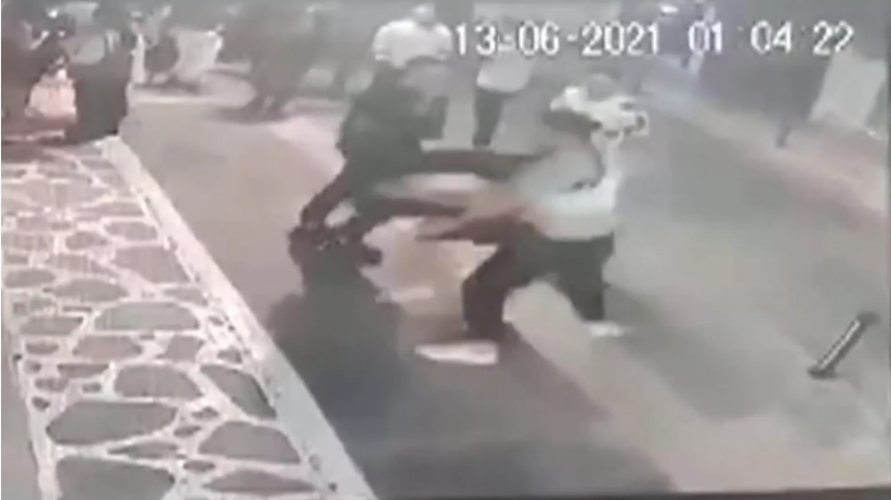Στο βίντεο εκεί που όλα δείχνουν ότι η βραδιά εξελίσσεται ήρεμα, ξαφνικά, ένας εκ των παρευρισκομένων που φοράει πράσινο μπλουζάκι, μαύρο παντελόνι και χιαστί τσάντα ώμου αφού φαίνεται να λέει κάτι σε έναν άλλον άνδρα με λευκό πουκάμισο, φεύγει από τη θέση του και επιτίθεται σε έναν σωματώδη άνδρα με λευκό μπλουζάκι και μαύρο γιλέκο.