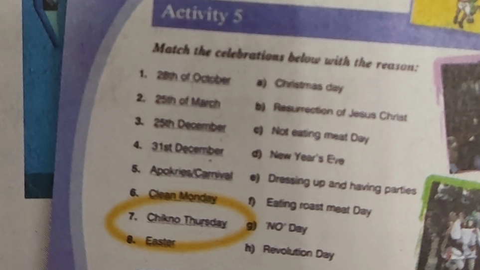 Συγκεκριμένα ο εν λόγω νεολογισμός εμφανίζεται στο βιβλίο εργασιών της Γ’ Γυμνασίου που δίνει το υπουργείο Παιδείας στους μαθητές στο πλαίσιο άσκησης στην οποία καλούνται να αντιστοιχίσουν ορολογίες εορτών στην Ελλάδα με φράσεις που τις περιγράφουν.