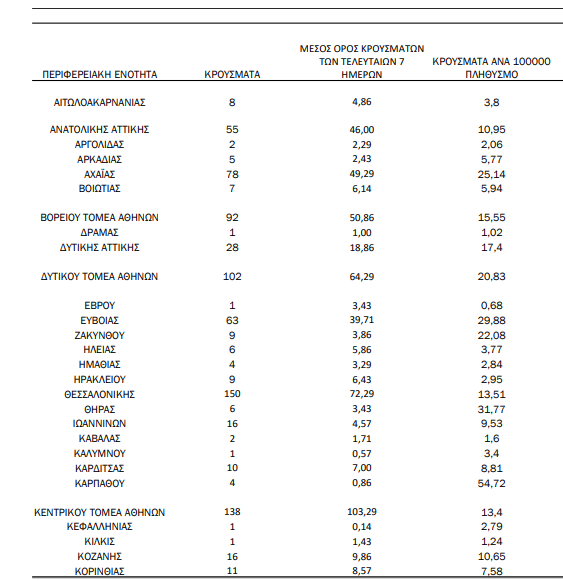 Κεντρικός Τομέα Αθηνών: 138 κρούσματα
