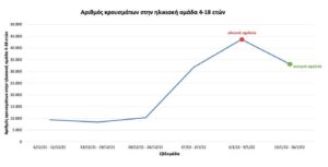 Σύμφωνα με σημερινά στοιχεία του ΕΟΔΥ, κατά την πρώτη εβδομάδα λειτουργίας των σχολείων εντοπίστηκαν 10.414 λιγότεροι μαθητές ηλικίας 4-18 ετών θετικοί στον κορωνοϊό, απ’ ό,τι την τελευταία εβδομάδα των διακοπών των Χριστουγέννων (από 43.608 θετικά κρούσματα μαθητών μείωση σε 33.194), και παρά το γεγονός ότι τα τεστ σε αυτή την ηλικιακή ομάδα αυξήθηκαν ραγδαία την πρώτη εβδομάδα λειτουργίας των σχολείων.