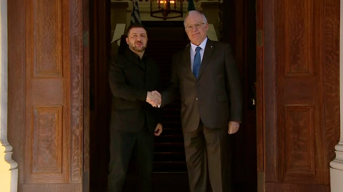 Έφτασε στην Αθήνα ο Ουκρανός πρόεδρος Βολοντίμιρ Ζελένσκι, με τον πρωθυπουργό Κυριάκο Μητσοτάκη να αναμένεται να τον υποδεχτεί στο Μέγαρο Μαξίμου στις 13.45. Σύμφωνα με σχετική ανακοίνωση από το γραφείο Τύπου του πρωθυπουργού, θα ακολουθήσουν συνάντηση των δύο ηγετών, δηλώσεις στον Τύπο και διευρυμένη συνάντηση των αντιπροσωπειών των δύο πλευρών. Αρχικά όμως, ο Πρόεδρος της Δημοκρατίας Κωνσταντίνος Τασούλας υποδέχεται τον Ζελένσκι στο Προεδρικό Μέγαρο.